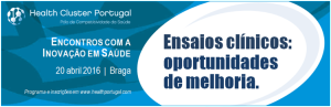 O Health Cluster Portugal organizará no Hospital de Braga no dia 20 de abril mais um Encontro com a Inovação em Saúde, dedicado ao tema «Ensaios Clínicos: Oportunidades de melhoria». Consulte aqui o programa deste encontro e inscreva-se até 14 de abril, enviando um email para … Continue a ler Encontros com a Inovação em Saúde| Braga, 20 de abril 2016